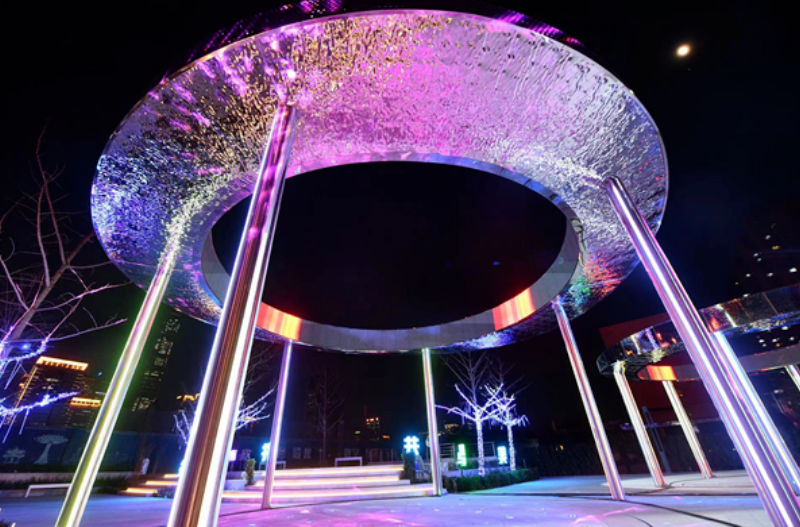 “雙井之光”音樂(lè)噴泉,將元宇宙元素與“雙井”兩口井的歷史名稱完美融合,以虛擬投影成像技術(shù),呈現(xiàn)出兩口巨大的“井”的意象;圓形的“井”口內(nèi)壁是由利亞德打造的LED互動(dòng)屏幕,畫(huà)面顏色鮮艷,圖像效果逼真,燈光與音樂(lè)同時(shí)互動(dòng),LED屏幕畫(huà)面不斷流轉(zhuǎn),讓人沉浸式“感受”到四季更替中的雙井美好時(shí)光。雙井之光東側(cè)的“雙井之窗”,是展示窗口,為市民提供豐富的休閑、娛樂(lè)、健身等互動(dòng)設(shè)施。28米長(zhǎng)的跑道旁設(shè)有可感應(yīng)的數(shù)字LED互動(dòng)顯示屏,融合互動(dòng)、放映、展示等功能。該顯示屏是利亞德具有超高刷新,高亮度以及高清顯示效果的創(chuàng)意產(chǎn)品,同時(shí)屏幕具備軍工級(jí)全防護(hù)、防水、防潮、防潑濺,適應(yīng)室外復(fù)雜的運(yùn)行環(huán)境。