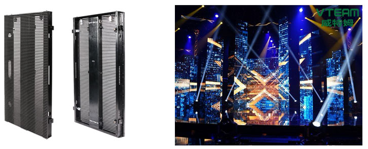 如果是對主屏幕襯托,或者背景渲染等作用,建議采用Cn系列產品。這類LED彩幕的特點是間距比較大,造價低,常見型號為P10和P12.5,模組尺寸為250mm*50mm,箱體尺寸為1000mm*500mm。