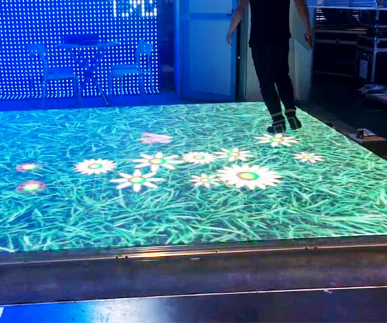 而現(xiàn)在的LED地磚屏不僅在基礎(chǔ)性能上有所進(jìn)步,還能添加了新的功能--感應(yīng)互動(dòng)。互動(dòng)LED地磚屏里面裝載有壓力傳感器或電容式傳感器或紅外傳感器等設(shè)備,當(dāng)人在地磚屏上移動(dòng)時(shí),傳感器能感應(yīng)到人的位置并將觸發(fā)信息反饋給主控制器,然后主控制器邏輯判斷后輸出相應(yīng)的顯示效果。