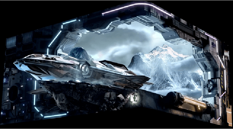 這款大屏總面積達(dá)到660㎡+,將“新媒體+裸眼3D”技術(shù)結(jié)合,顯示效果從常規(guī)畫面直接升級為高清裸眼3D,大屏以“灣區(qū)樞紐,萬象羅湖”為主題,未來科幻場景作為載體,在呈現(xiàn)羅湖國貿(mào)、地王等地標(biāo)的同時,將深圳以金色太空之城的展現(xiàn)出來。裸眼3D屏以高刷新、高灰階、高對比度為優(yōu)勢,給觀眾帶來沉浸式體驗(yàn)效果。