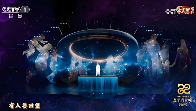 春晚自1983年央視首次舉辦以來,屏幕技術的應用也經歷了從無到有,從簡單到復雜,從固定到機械移動,從單屏顯示到“VP+XR”沉浸式超高清顯示的巨大變革。2024年,春晚創(chuàng)新引入VP電影制作模式,打造“XR+VP”超高清制作系統(tǒng)。通過動態(tài)分鏡預演、虛實光影聯(lián)動等全新拍攝手法,演繹出“飛龍在天”的磅礴氣勢,首次在演播大廳部署沉浸式舞臺交互系統(tǒng),為觀眾帶來“人景合一”的沉浸式感受。2025年的總臺春晚舞臺更是將“機械升降屏、裸眼3D、虛擬現(xiàn)實、超高清視覺投影”等技術應用的淋漓盡致,打造一個變幻無窮、層次豐富的“如意”空間,為觀眾帶來更加驚艷的觀看體驗。舞蹈《喜上枝頭》汲取“喜鵲登上枝頭”的美好寓意,運用舞臺機械結構,配合垂幕、投影和地屏,將舞臺圍攏成巨幅的國畫卷軸,寄托了人們對美好生活的向往與期許。